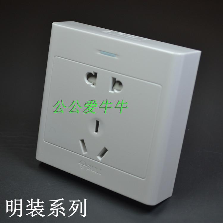 Bull surface-mounted switch socket Panel wall ultra-thin open line 5-hole power supply open box Household five-hole open socket