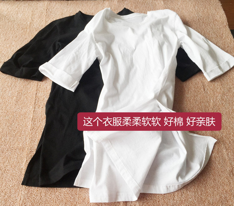 Special price clear split cotton T-shirt skirt pure white mid-length version five-point sleeve ladies spring and summer round neck