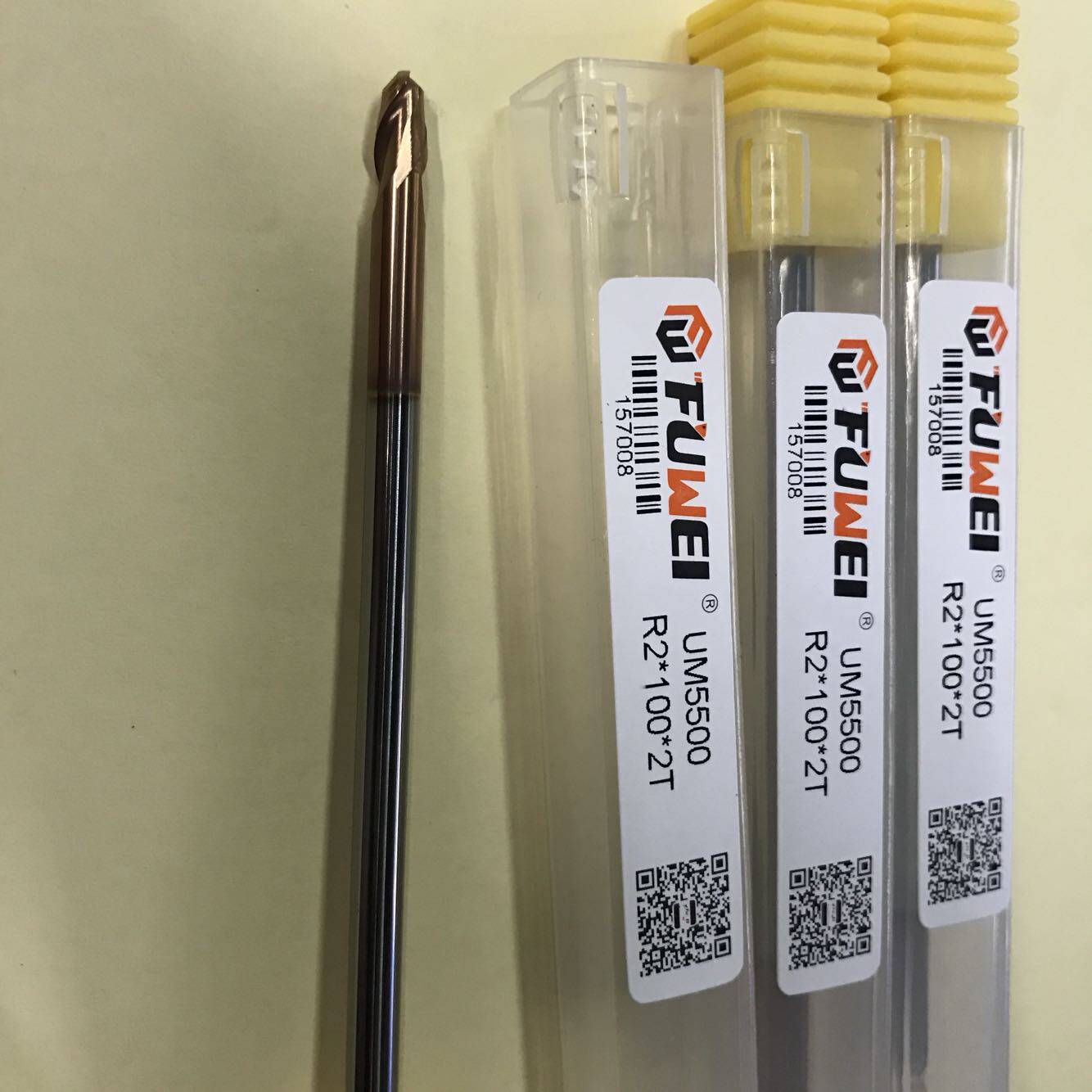 Fuwei standard solid carbide ball end milling cutter R2*100L*2T tungsten steel end mill 55 degree hardware processing