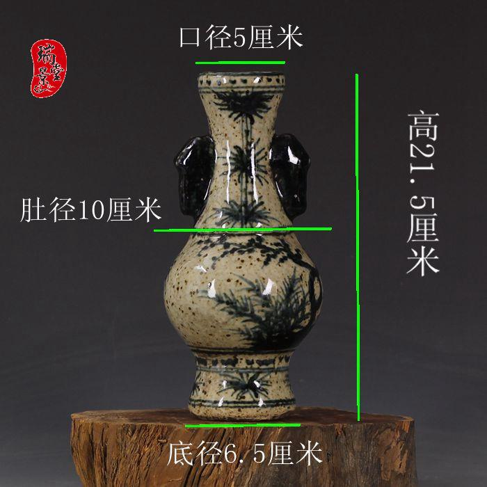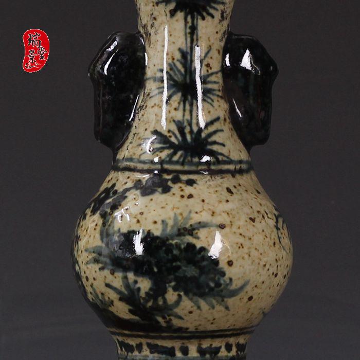 Jingdezhen antique porcelain Yuan Qinghua Flower Elephant Ear Bottle Antique Ancient Play Antique Porcelain Collection Full Handmade Pendulum