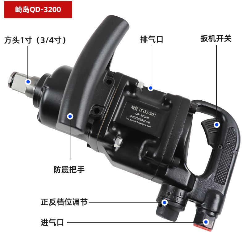 Japan's Saiki One inch 3 4 stroke Stroke Cannon Pneumatic Wrench Industrial Class Big Torque Steam Repair Heavy Windy Gunter Gun Machine