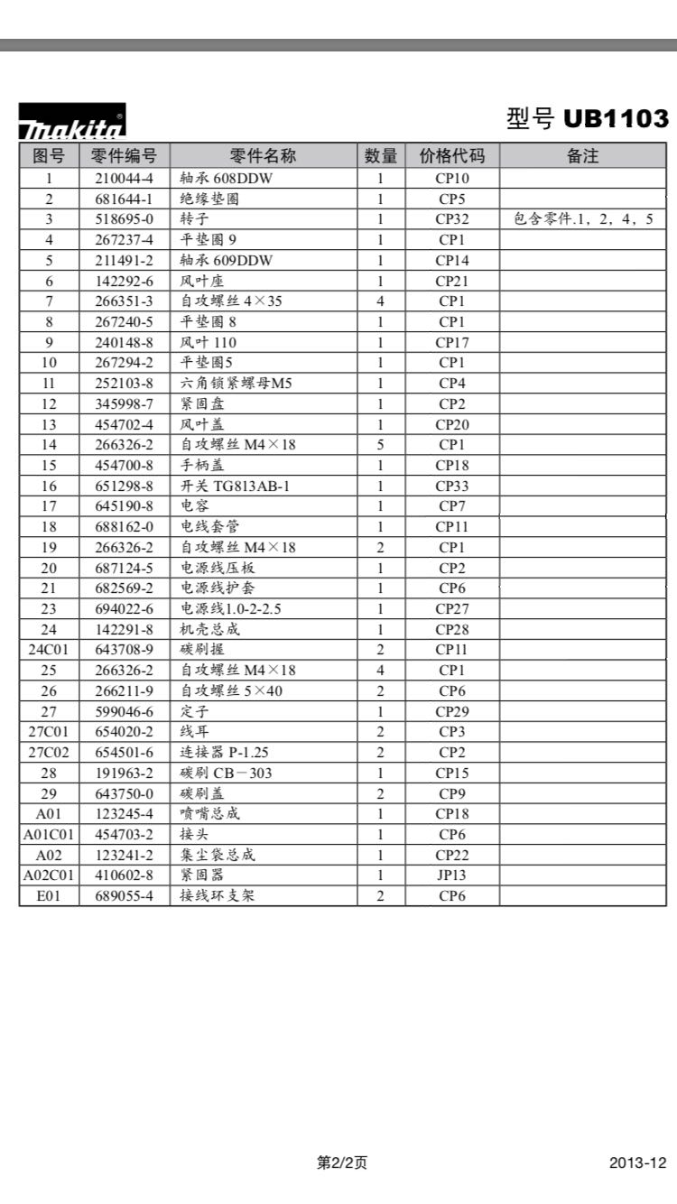 PASTA MAKITA HAIR DRYER UB1103 ORIGINAL FITTING SPARE PARTS