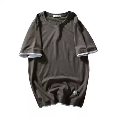 Summer Hong Kong Style Tide Brand Loose Cotton Short Sleeve T-shirt Men Half Sleeve base shirt Couple T-shirt Fake Two Coats