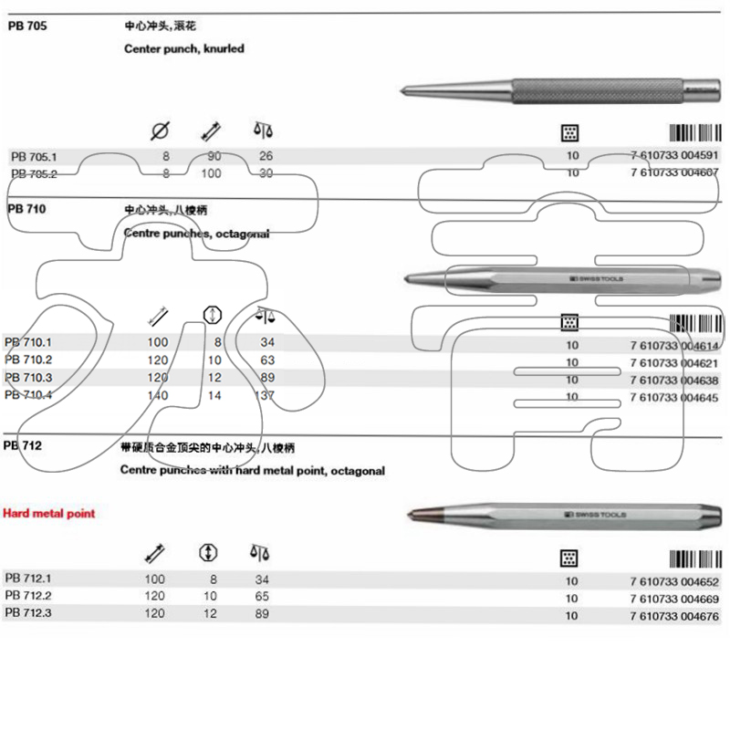 Swiss original PB SWISS TOOLS CENTER punch PB 705 710 712 series