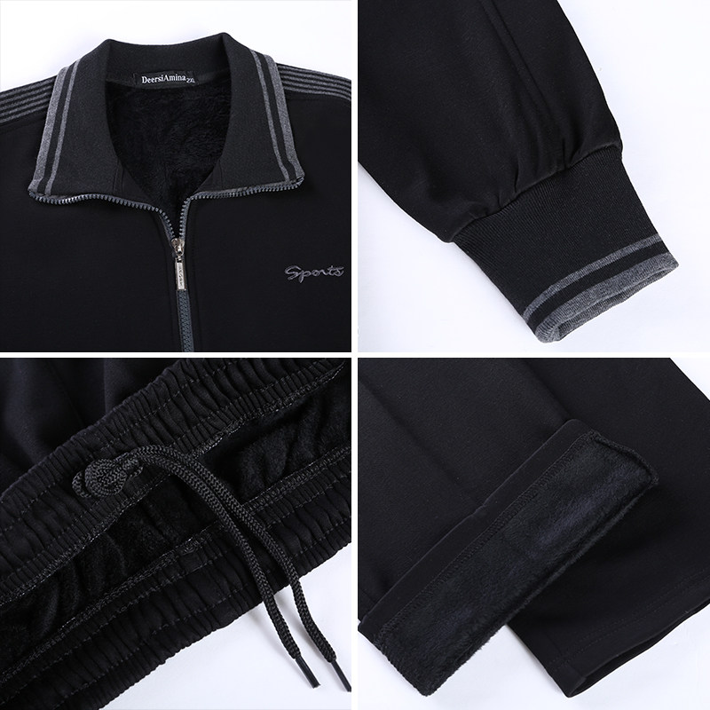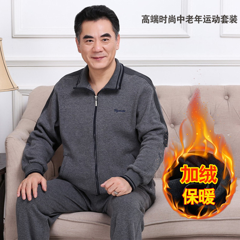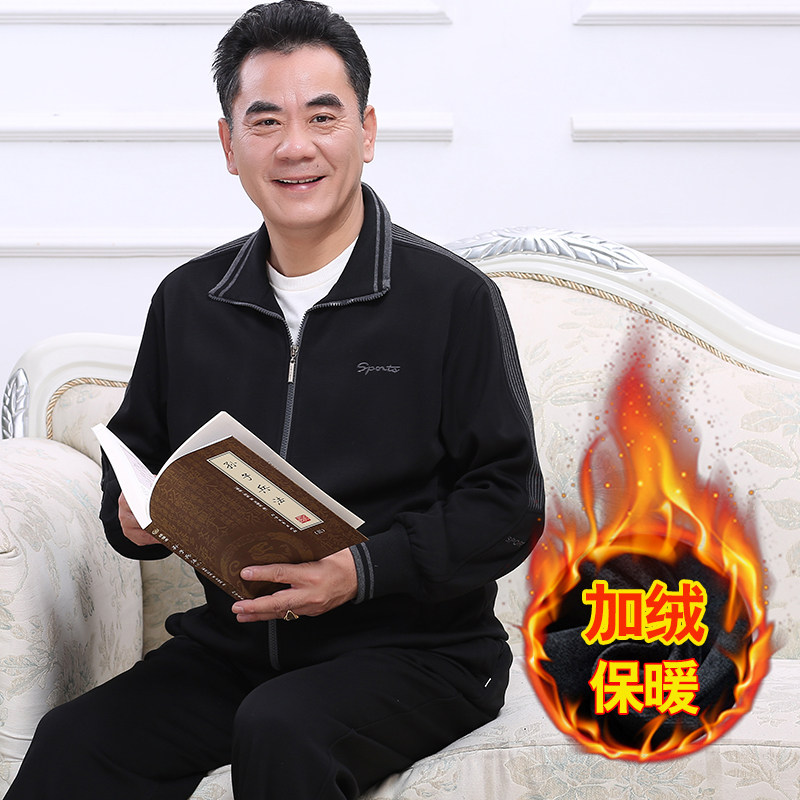 Middle-aged sports suit Men's autumn and winter large size loose velvet thickened casual middle-aged sportswear dad outfit