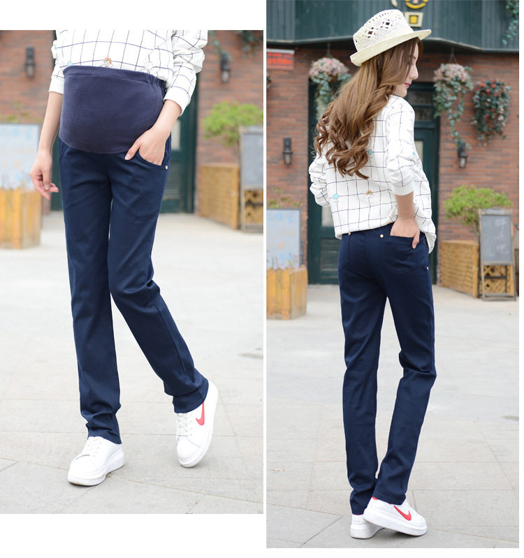 Large size Spring and Autumn thin pregnant women pants high waist belly trousers pregnant women work pants black navy blue trousers loose