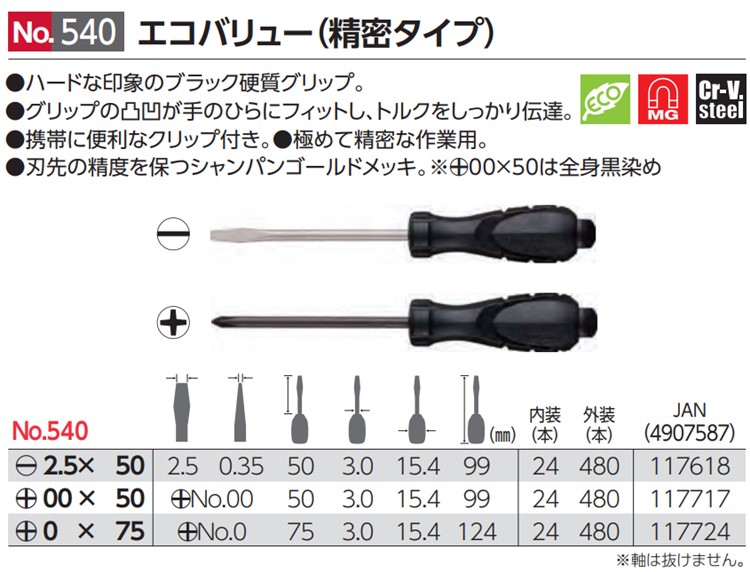 Japan VESSEL Wiesel Weiwei NO 540 environmentally friendly anti-slip handle mobile phone notebook computer screw driver
