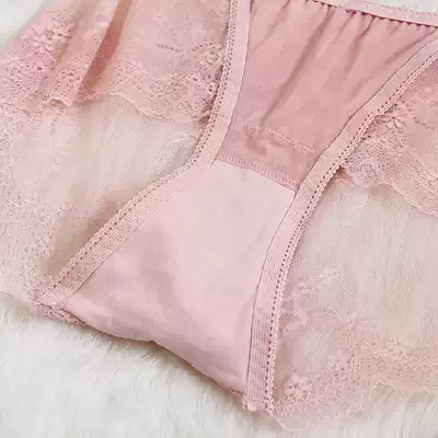 Ladies full lace sexy mesh ultra-thin transparent lace seamless middle waist triangle hip underwear