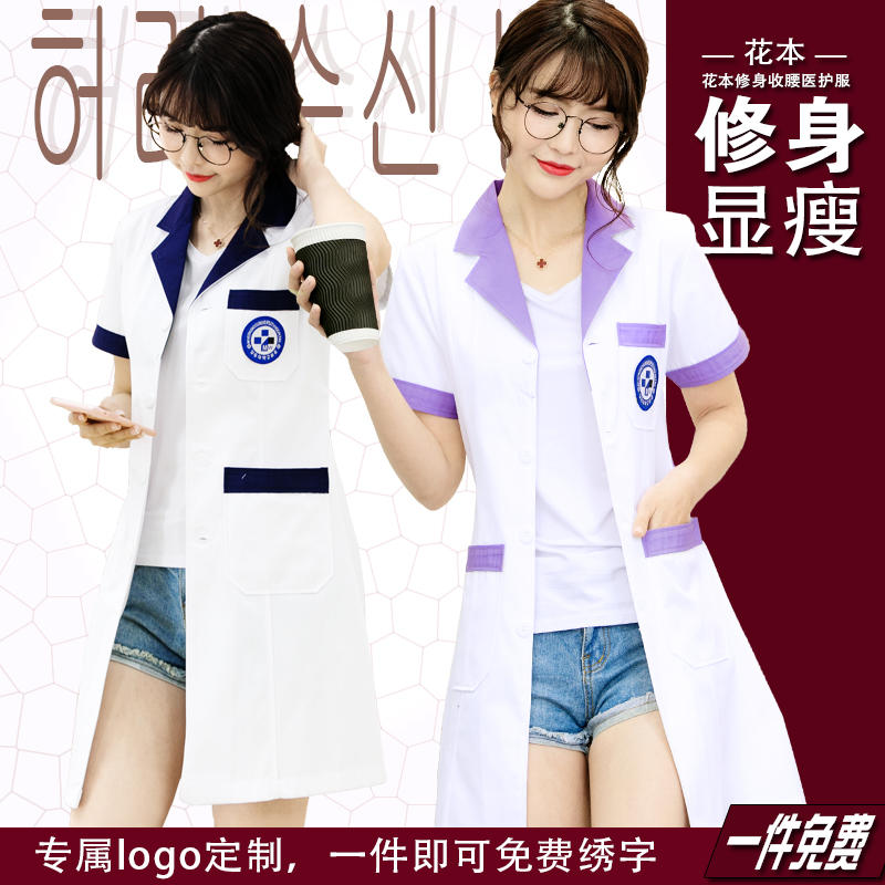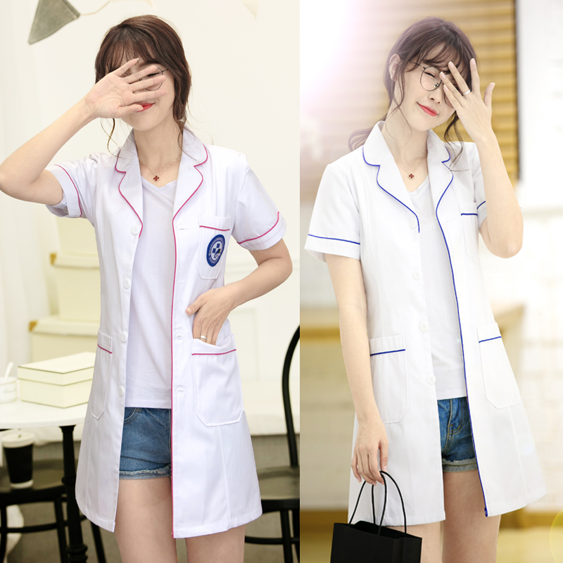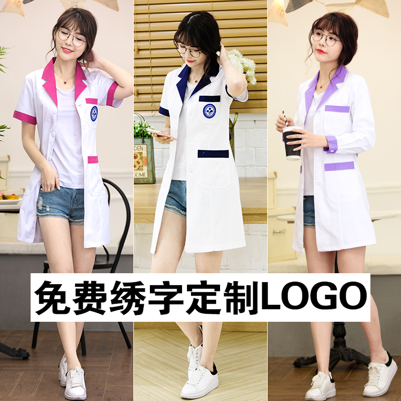 Korean Version White Coat Long Sleeve Doctor Clothes Woman White Coat with short sleeves Nursing wear workwear The beauty salon work clothes weave embroidery