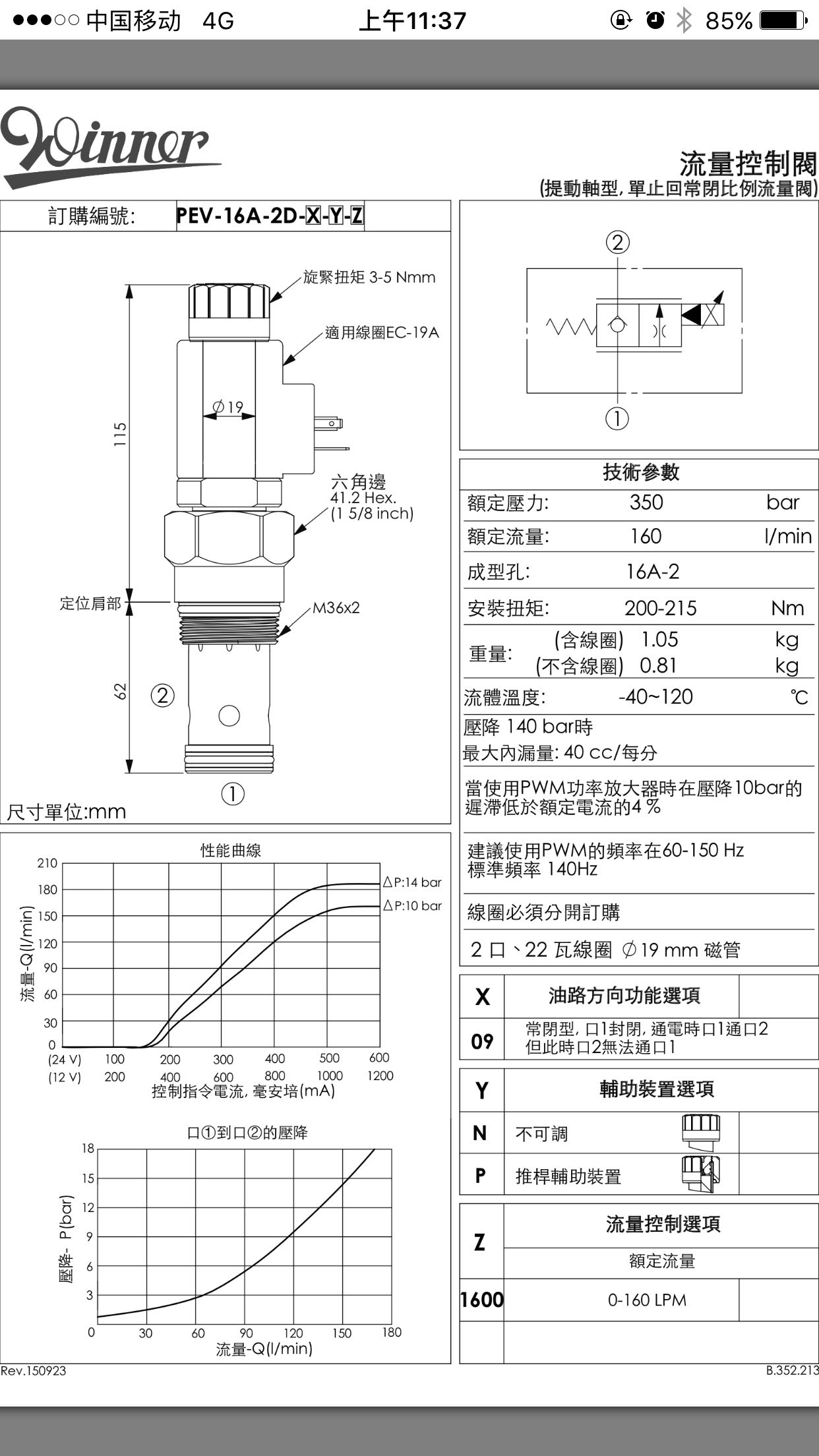 WINNER large flow proportional throttle valve PEV16A2D1600 PEV-16A-2D-09-P-1600