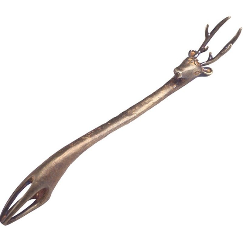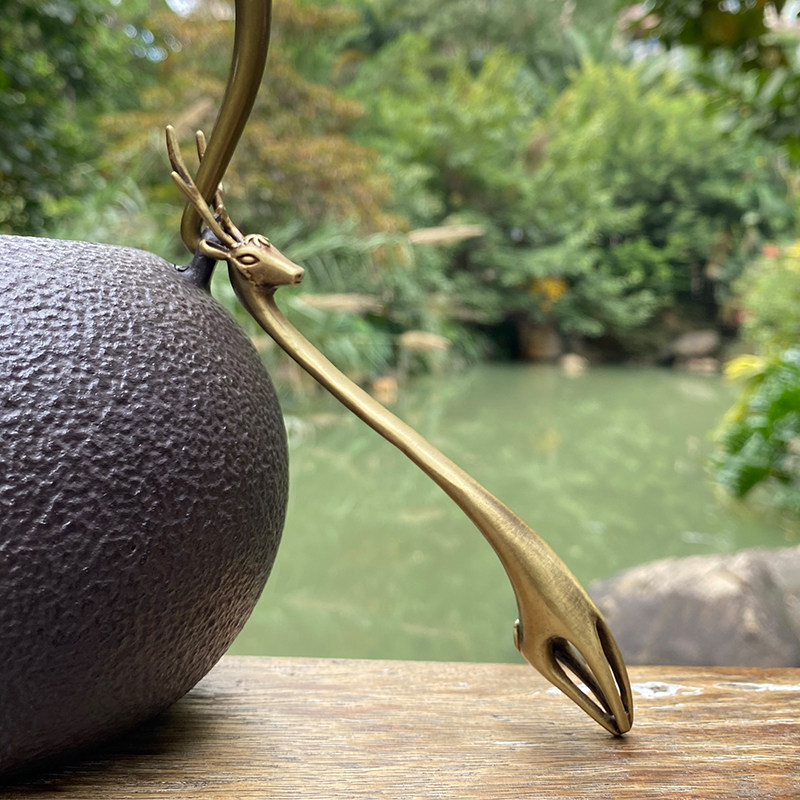 Small deer pot fork Pure copper pot lid fork Japanese iron pot accessories retro bamboo fork Xiang deer horn pot holding pot with tea set
