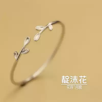 s925 silver leaf bracelet fresh and sweet leaf bracelet temperament literary open bracelet cute fashion silver jewelry