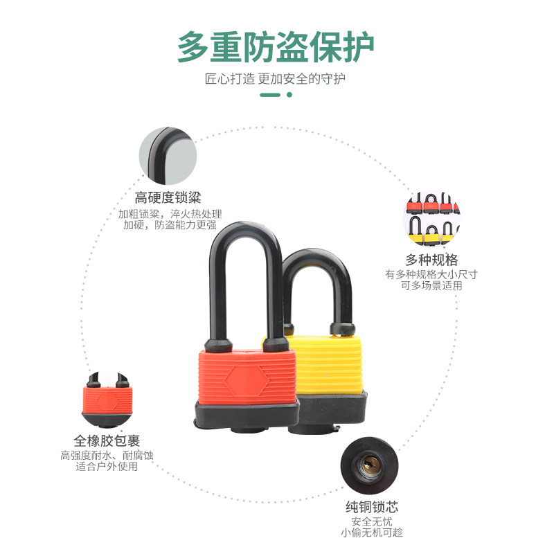 Rubber waterproof and rainproof stainless padlock electric anti-theft copper padlock outdoor anti-rust door padlock parking space padlock