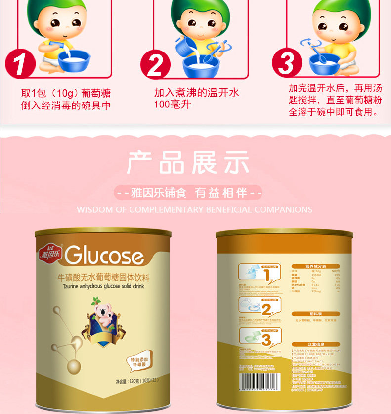 Glucose adults supplement sugar energy containing taurine 320g canned for Jainle Glucose baby children