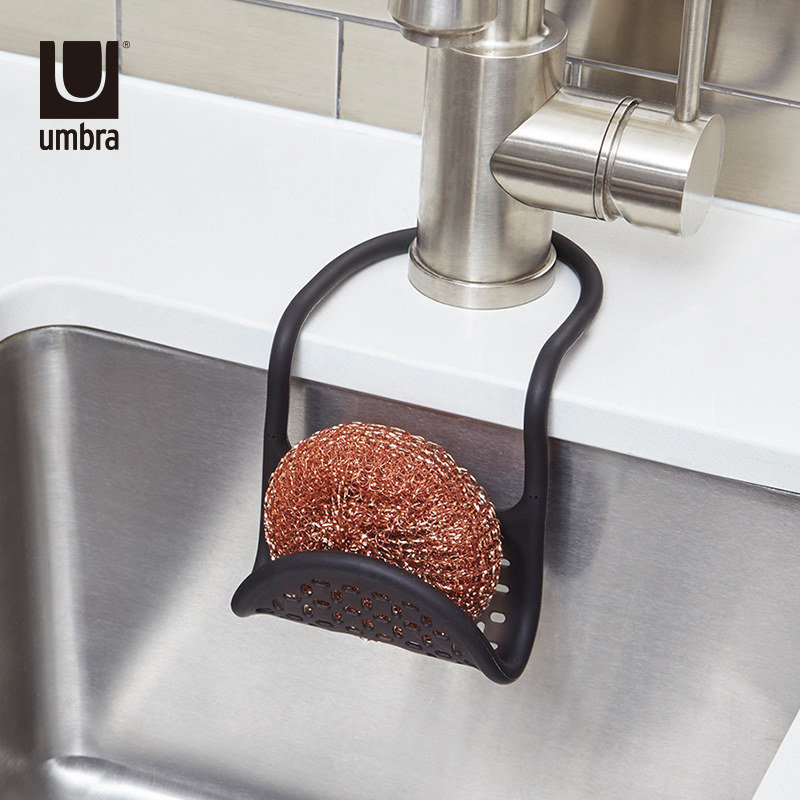 umbra commander creative kitchen sponge drain rack adjustable sink containing hanging basket draining basket kitchen set up