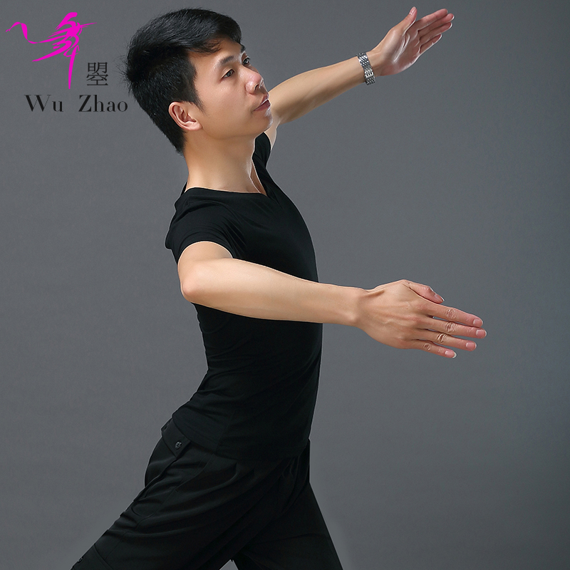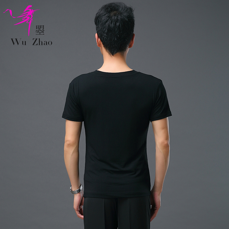 Male Adult Latin Dance Practice Long Sleeve Blouse Summer Autumn New Morden National Mark Social Dance Suit Short Sleeve Black