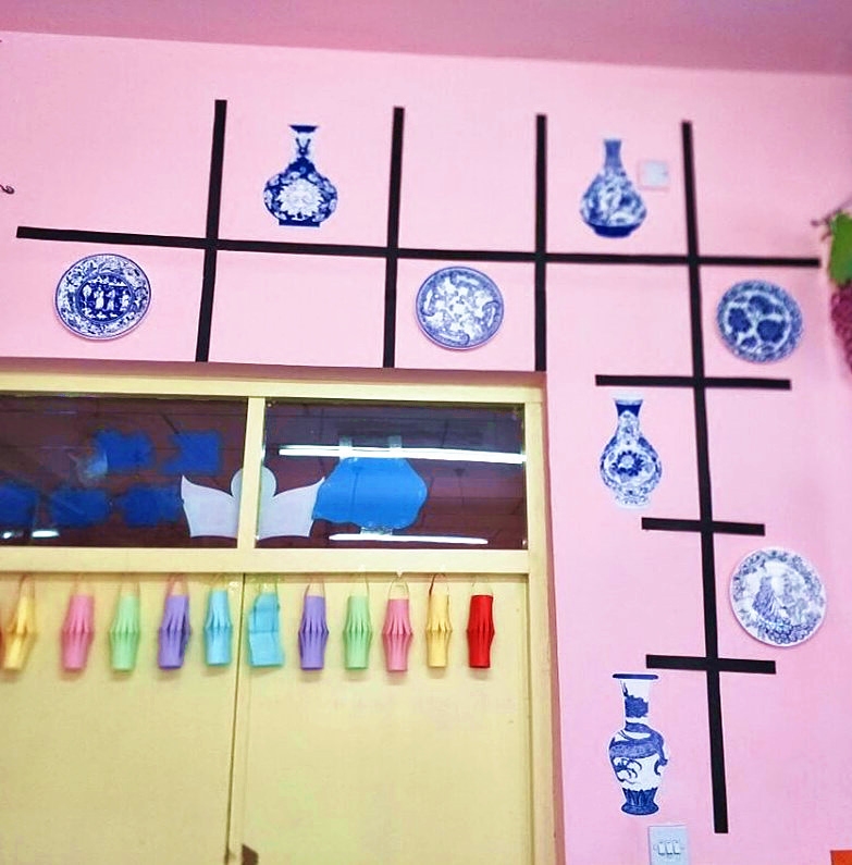 Kindergarten Decoration China Wind Green Flower Porcelain Hanging Decoration China Wind Ethnic Characteristics Paper Green Flower Porcelain Vase Wall Sticker-Taobao