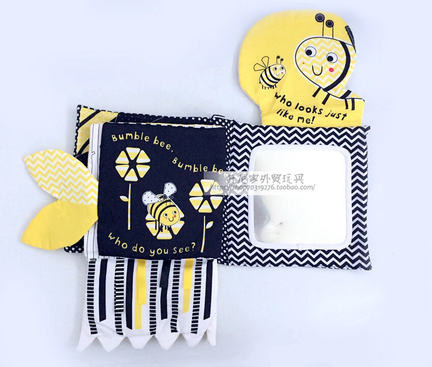 Baby enlightenment cognition newborn black and white vision big cloth book three-dimensional small organ English cloth book sound paper safety mirror