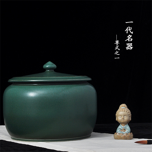 Vase Ceramic Ware Pendulum with peacock green storage Pu'er tea leaf cover pot Jingdezhen Ikea Retro wedding decoration