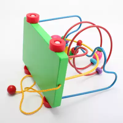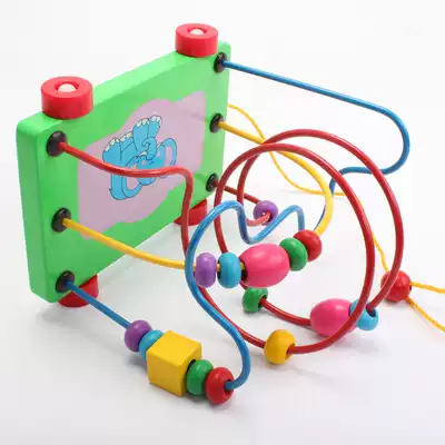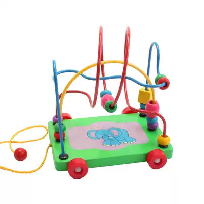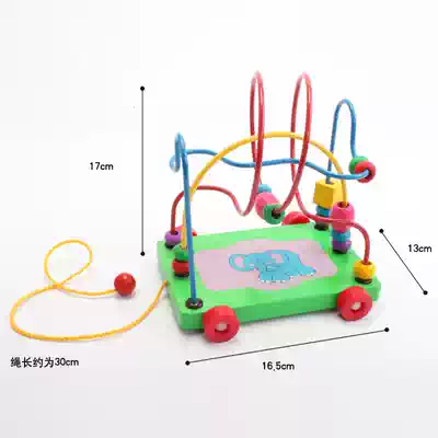 Infants and young children dragging toddler toy car Wooden rope toy Baby educational beaded beaded toy 1-3 years old