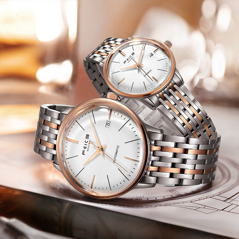 Feike Dream Couple Watch A Pair of Trendy Men's and Women's Watches Fashion Mechanical Watch Simple Ultra-thin Business Waterproof Steel Belt Watch