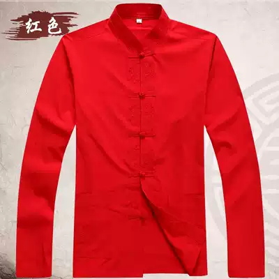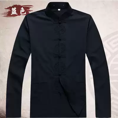 Spring men's long-sleeved dad's Tang suit top Middle-aged and elderly grandpa's summer Hanfu shirt Men's Tang suit