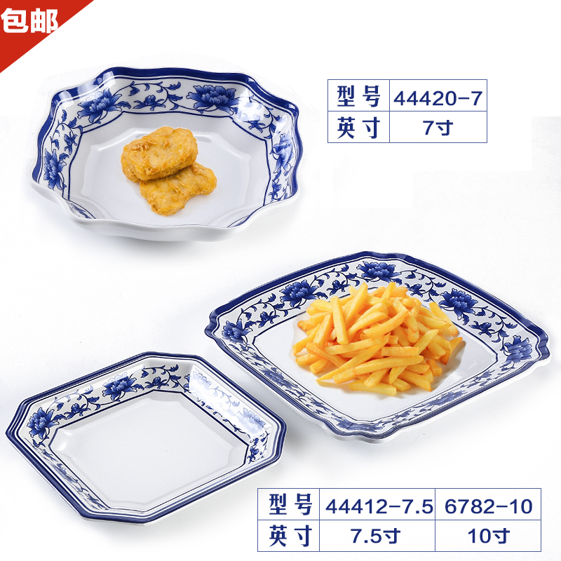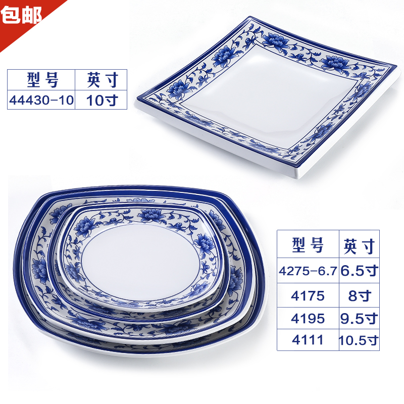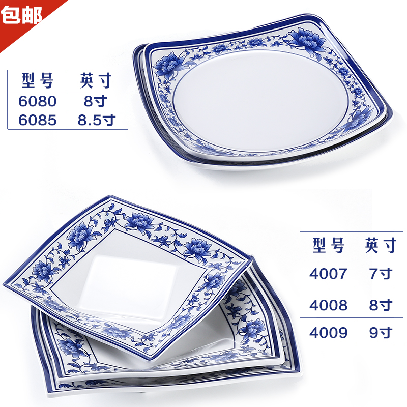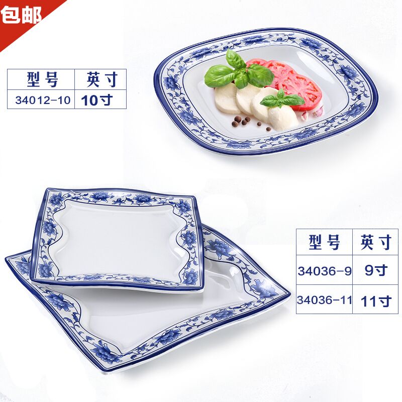 Thickened melamine A5 green flower porcelain quadrilateral pan imitation porcelain square fired plate Plastic Hotel Dinner Plate Cutlery Dish
