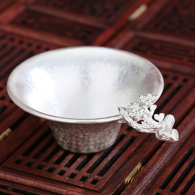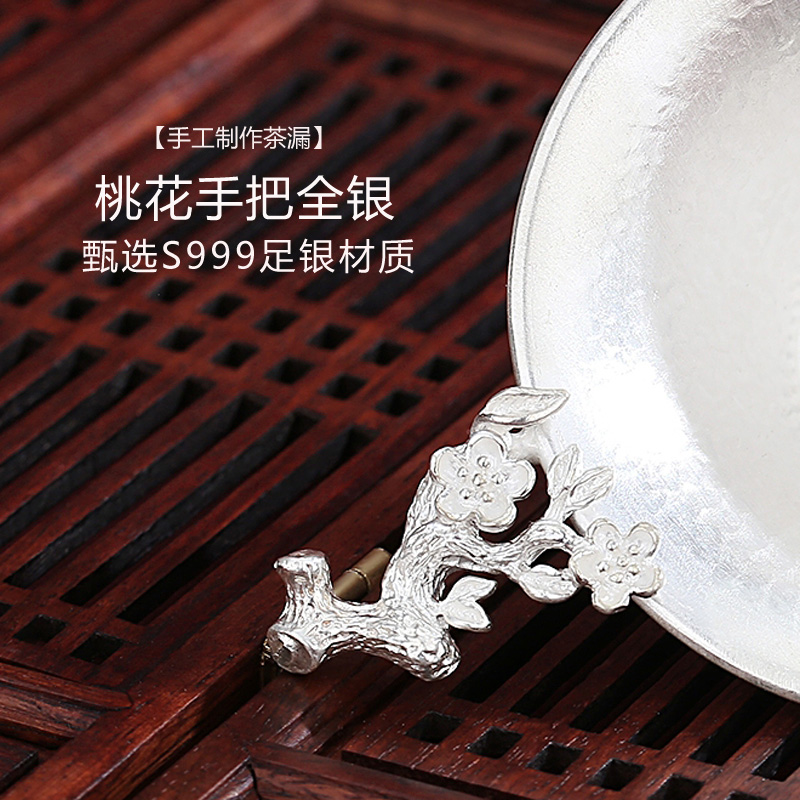 (Tea Ceremony) Suzhou Silver House Full Silver 999 Kung Fu Tea Set Peach Blossom Filter All Silver Tea Silver Tea Leaker Filter