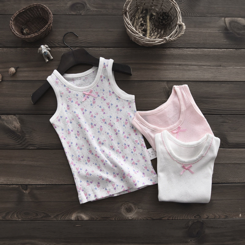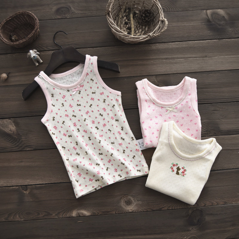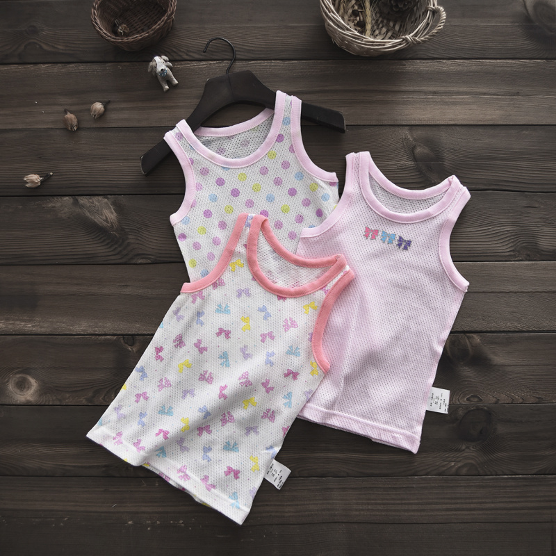 Fluorescent Japanese children vest hanging girl baby baby cotton hollow net eye bottom sleeveless summer
