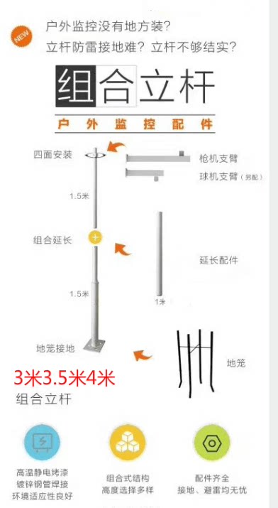1 m 2 m 2 5 m 3 m 3 5 m 4 m 6 m Camera monitoring pole bracket Ball machine gun machine combination pole