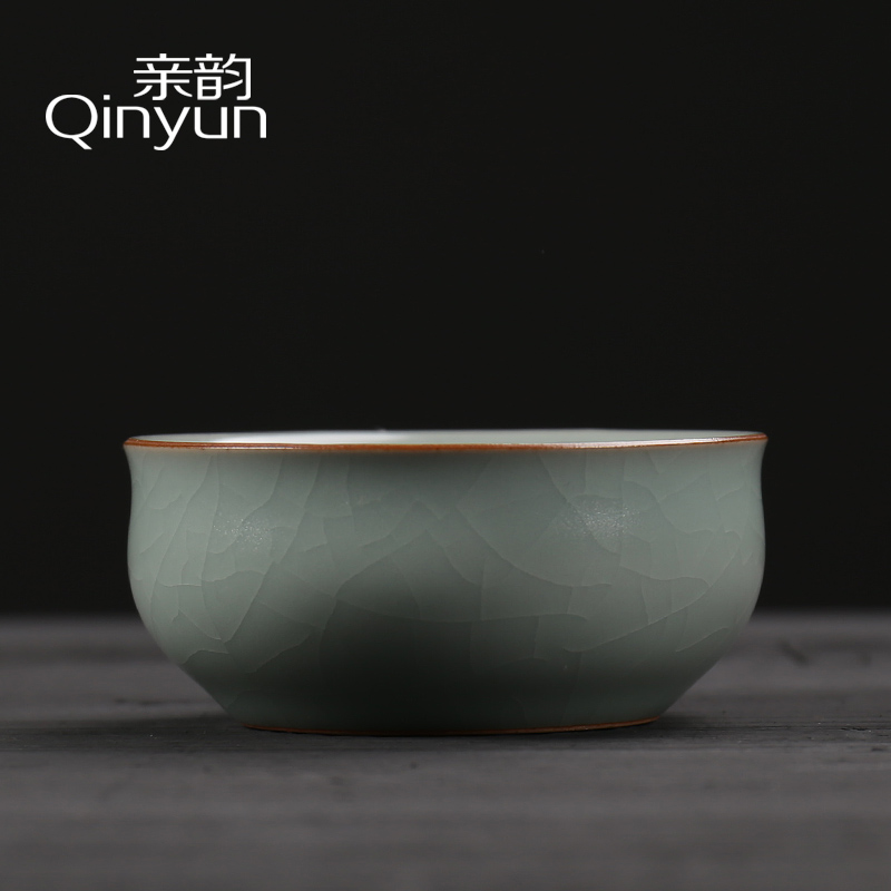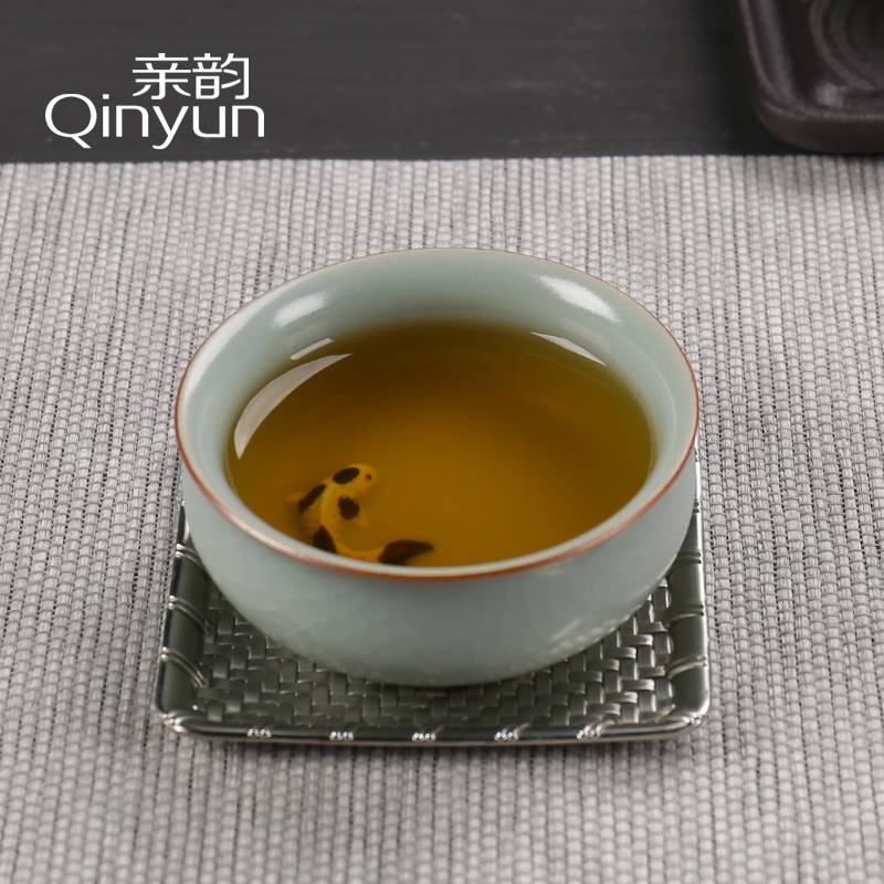 Pro-rhyming Ru kilns floating fish handmade open sheet ice cracking can raise Ru porcelain ceramic tea cup tea Daofu tea cup tea with tea cup