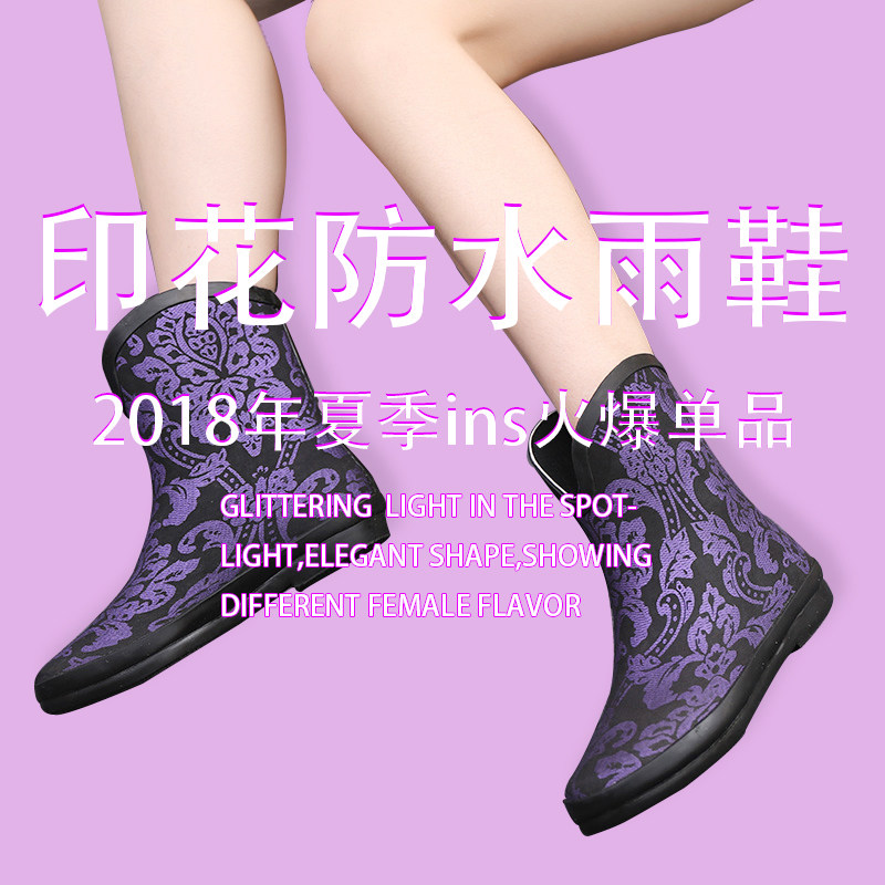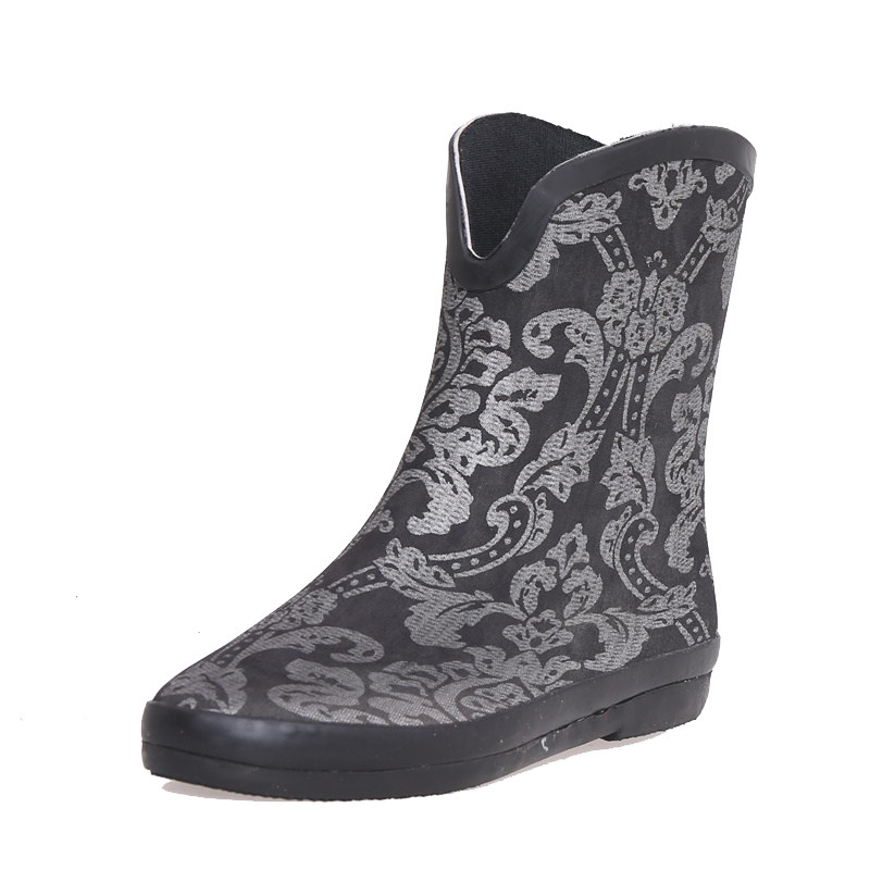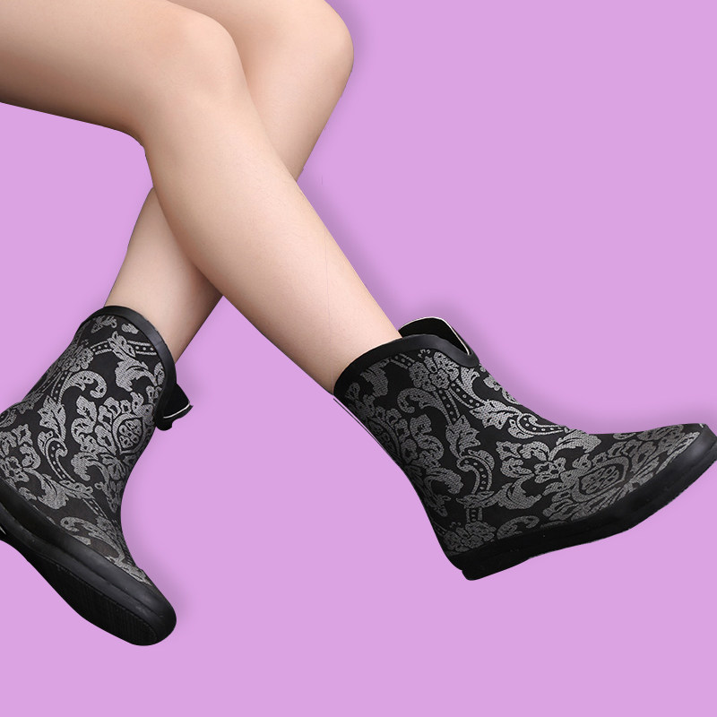 Fashion Printed Short Drum U Shaped Rain Shoes Women Natural Rubber Water Shoes Water Boots Adult Students Anti Slip Rain Boots