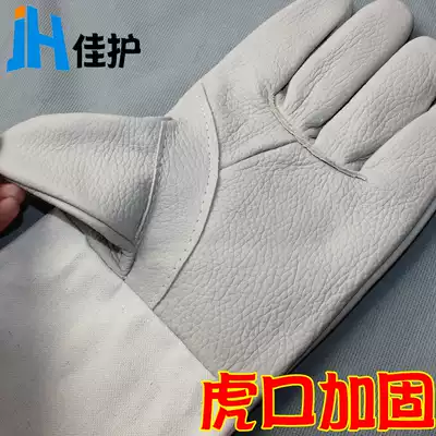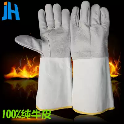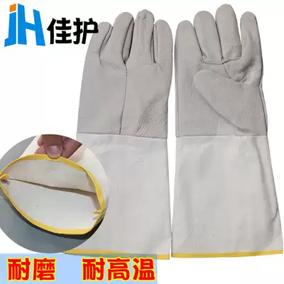 Jiayu long plate front layer cowhide canvas sleeve welding gloves welder durable anti-hot thick insulation 10 pairs