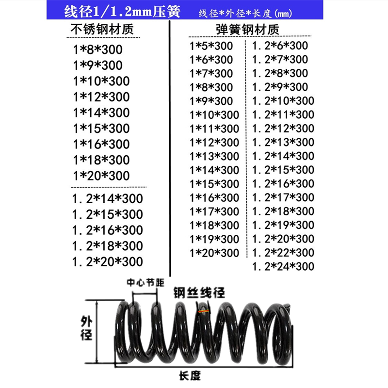 Line 1* Outer diameter 6-20mm pressure spring