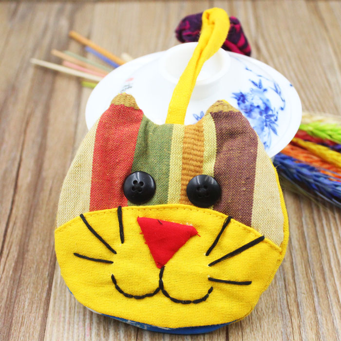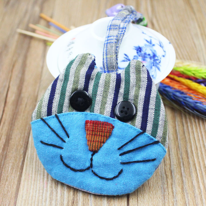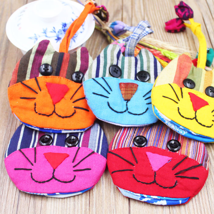 Yunnan Characteristics National Wind Handmade Cloth Art Big Face Cat Key Button Key Chain Creative Cute Accessories