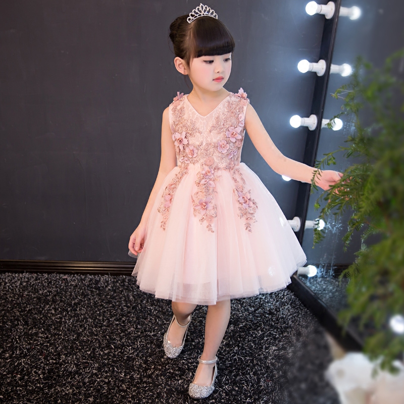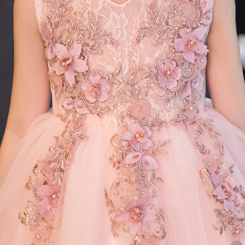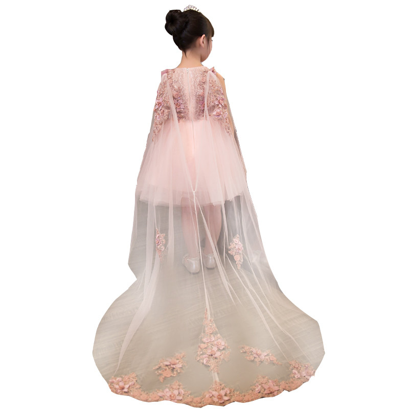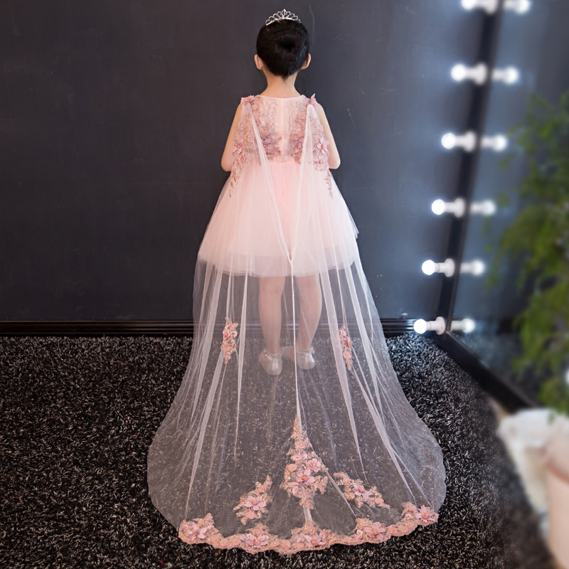 Girl Evening Gown Princess Dresses Princess Dresses Children Child Marriage Yarn Trailing Extra-long Flowers Birthday Piano to Serve Pink