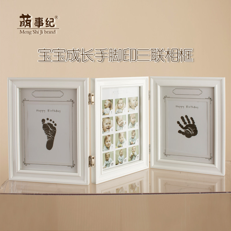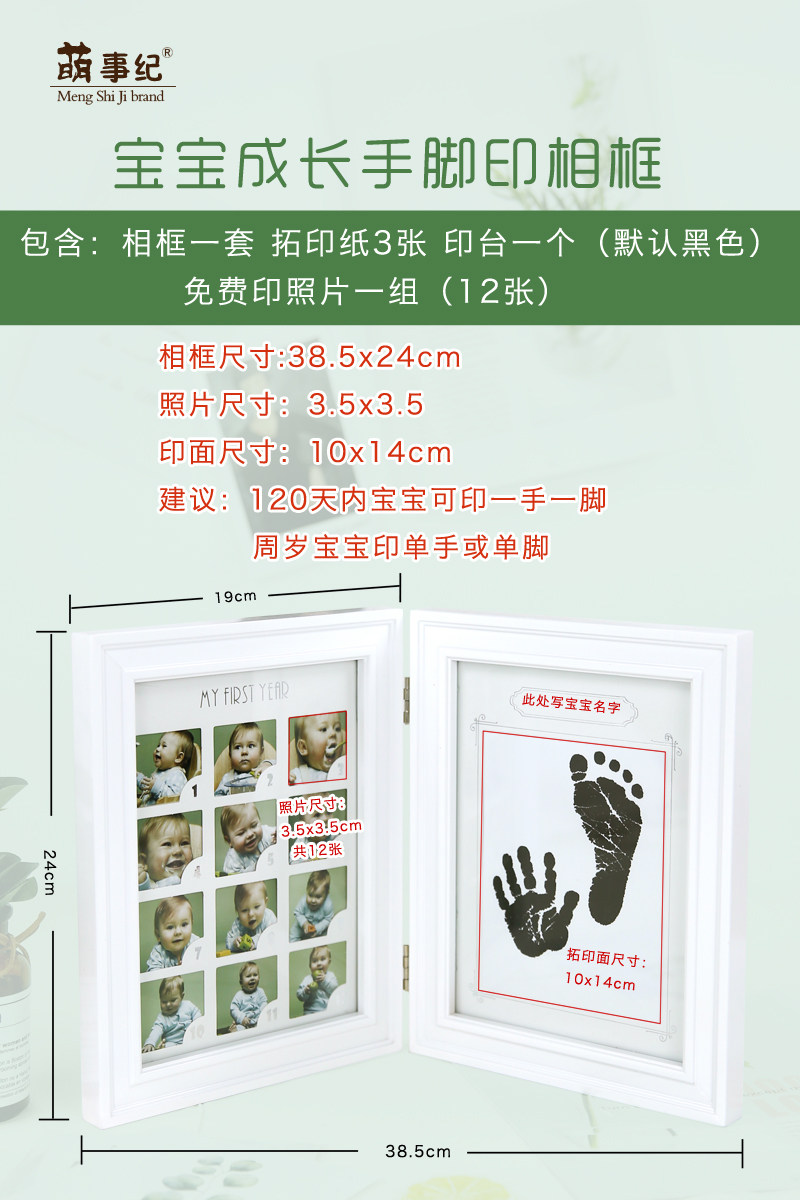 Cute story baby hand and foot print memorial frame Baby full moon year old 100 days hand and foot print one year old birthday commemorative photo frame