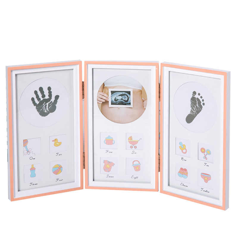 (0-12 months) [Hand and foot printing wooden paper photo frame]