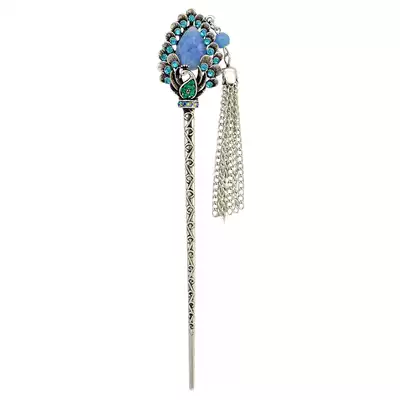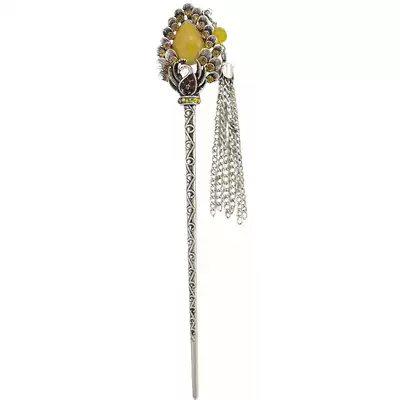 New vintage silver plated alloy hairpin People's Feng Shui drilling bird headdress Classical female hairpin women's jewelry