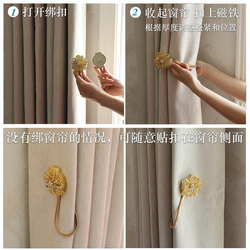 The new simple diamond-encrusted crystal magnetic curtain straps curtain buckle free punch free hook does not damage the wall