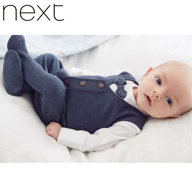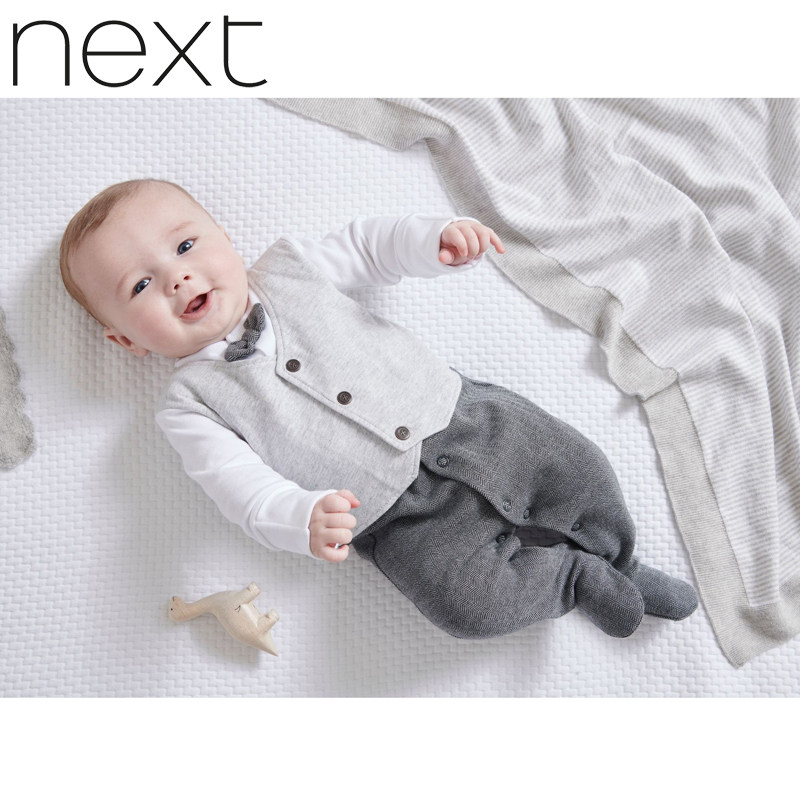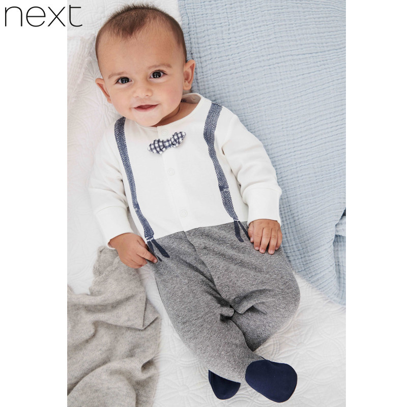 Spot British Next 100-day dress spring and autumn baby cotton full moon one-year-old gentleman jumpsuit newborn romper