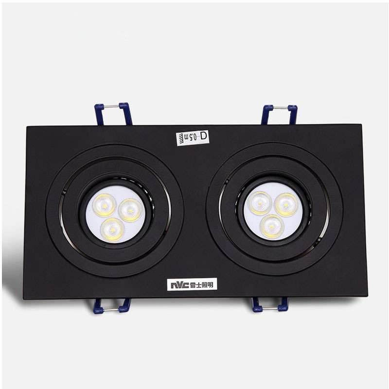 NVC square spot light Double head led grille spot light Bold light Living room rectangular black ceiling downlight Ultra-thin