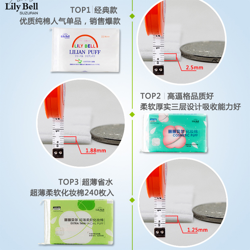 Lilibel cotton 222 pieces three-layer double-sided pure cotton makeup clean wet compress water-saving disposable makeup remover cotton