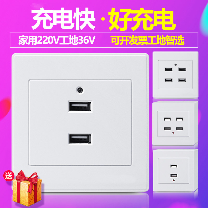 86 type surface mounted wall socket with multi-port 4 four holes USB panel intelligent charging site low voltage 220V to 5V