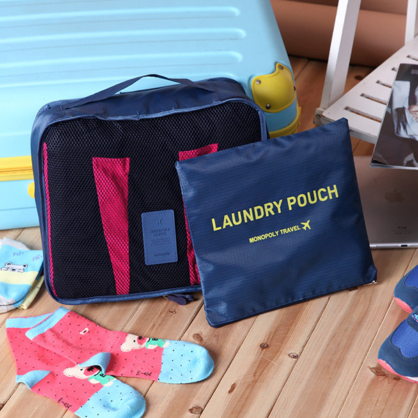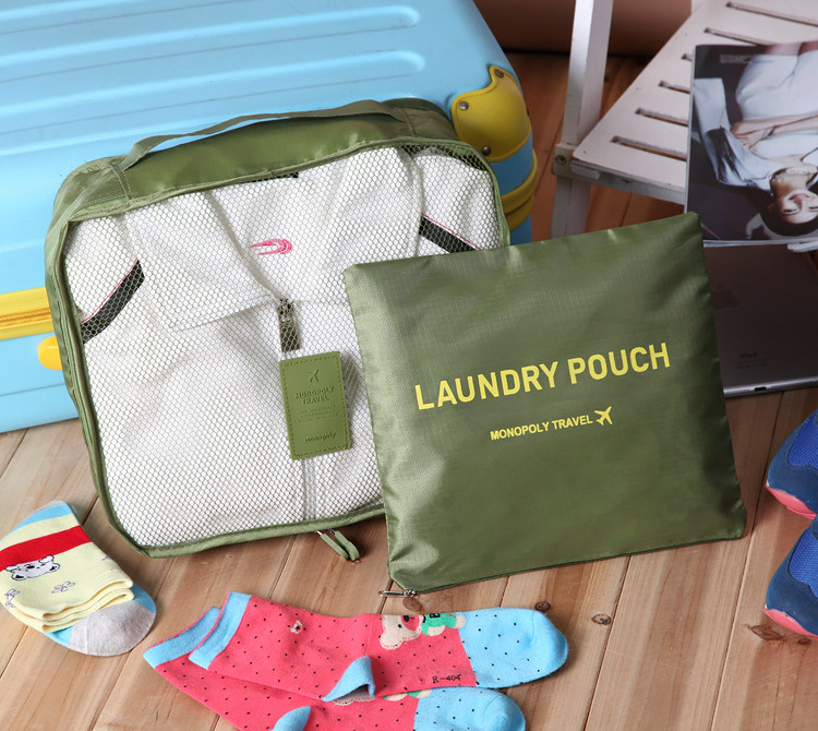 Travel Portable Grid Storage Bag Luggage Clothes Organizer Nylon Waterproof Wash Bag 2-Piece Set