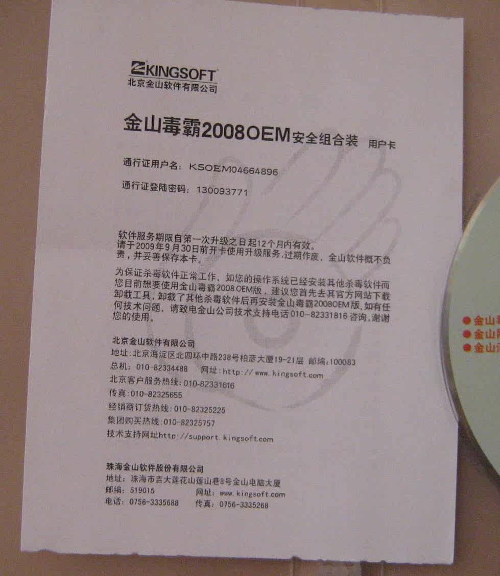Kingsoft Antivirus 2008 OEM Edition Antivirus Suite Genuine My e-Home Collection Collection