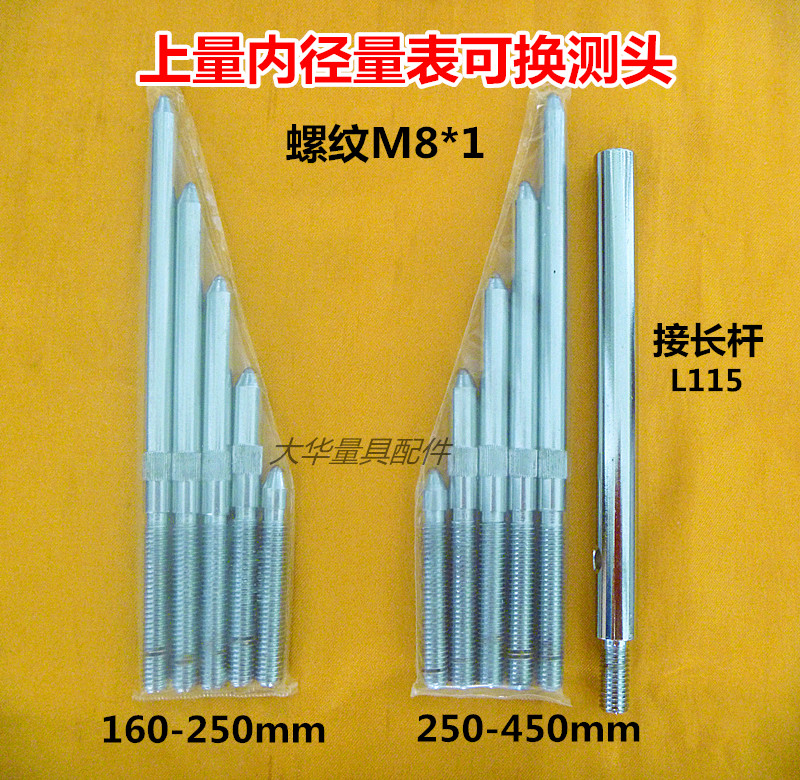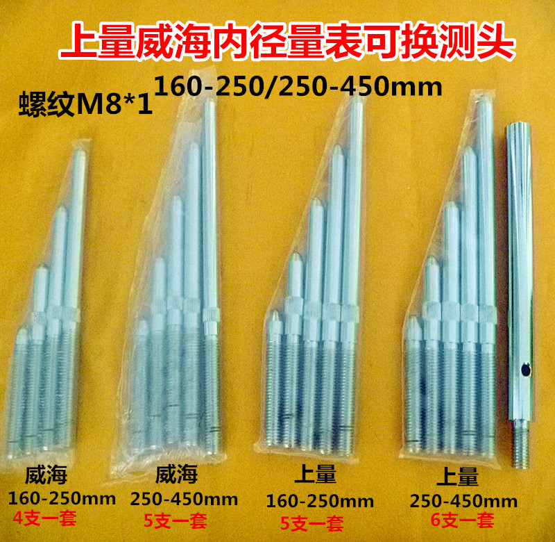 Weihai volume inner diameter dial indicator measuring rod 160-250-450mm replaceable probe measuring rod thread M8x1