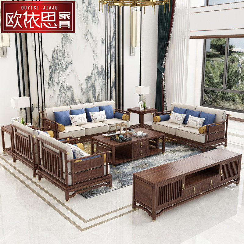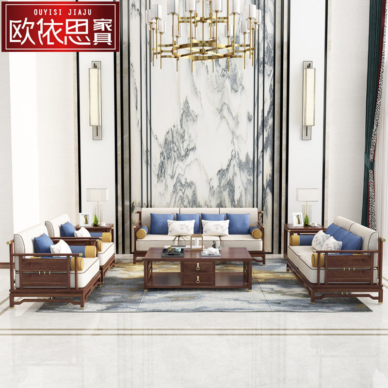 Modern new Chinese style solid wood Zen sofa combination simple living room villa club model room hotel furniture customization