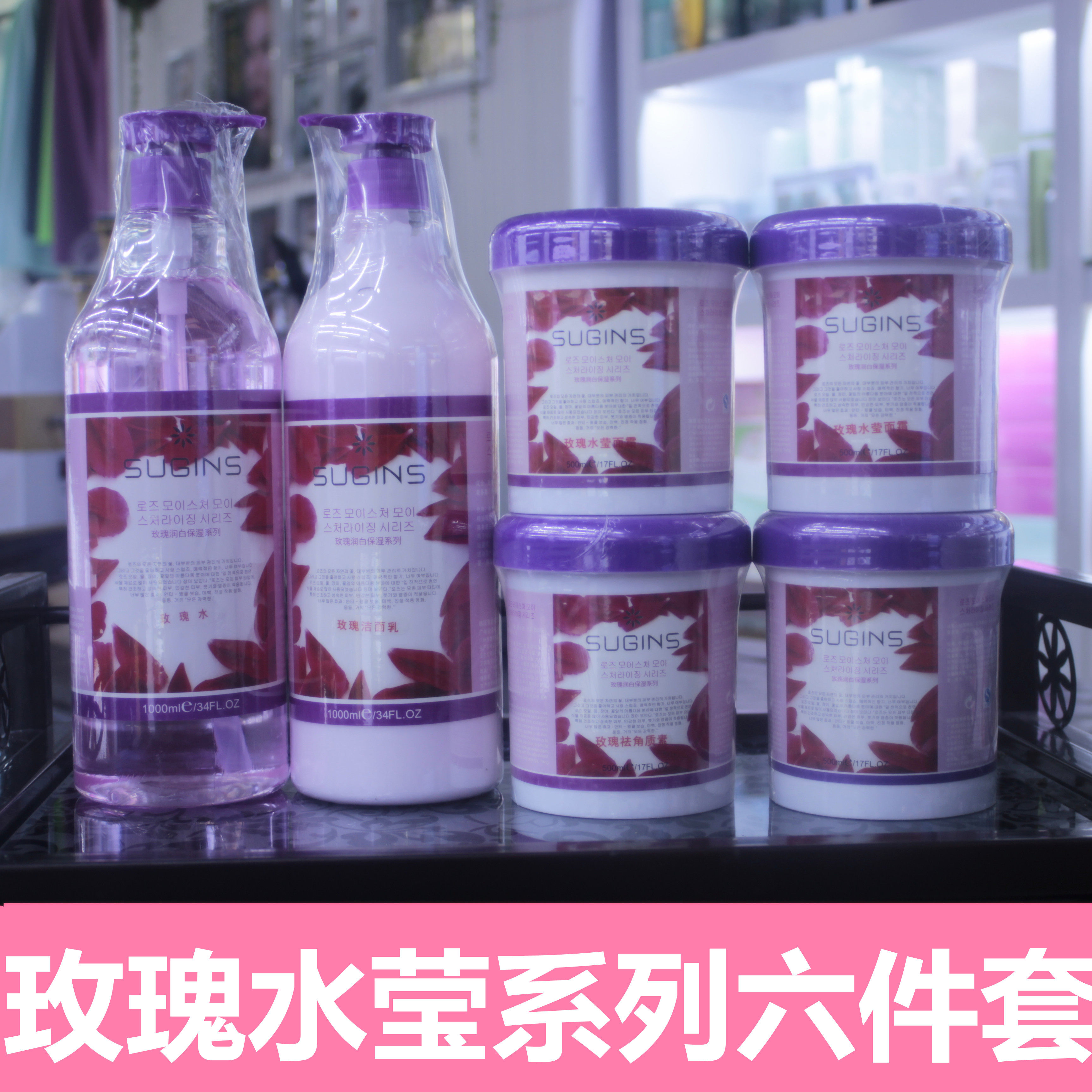 Six-piece set cleanser 1000ML rose water 1000ML exfoliation 500ML massage cream 500ML face cream 500ML mask cream 500ML rose soft mask powder (same as