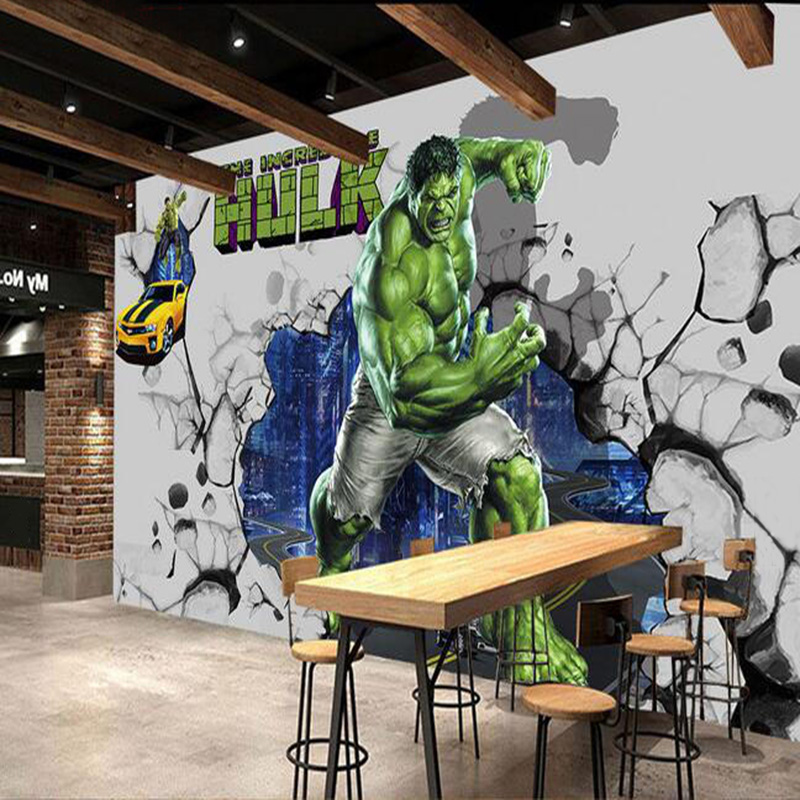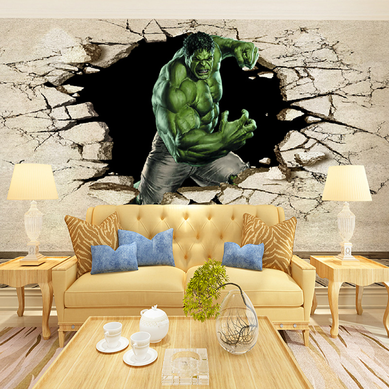 Customized personality creative 3d three-dimensional large mural Hulk wallpaper ktv bar TV hospital gym wallpaper